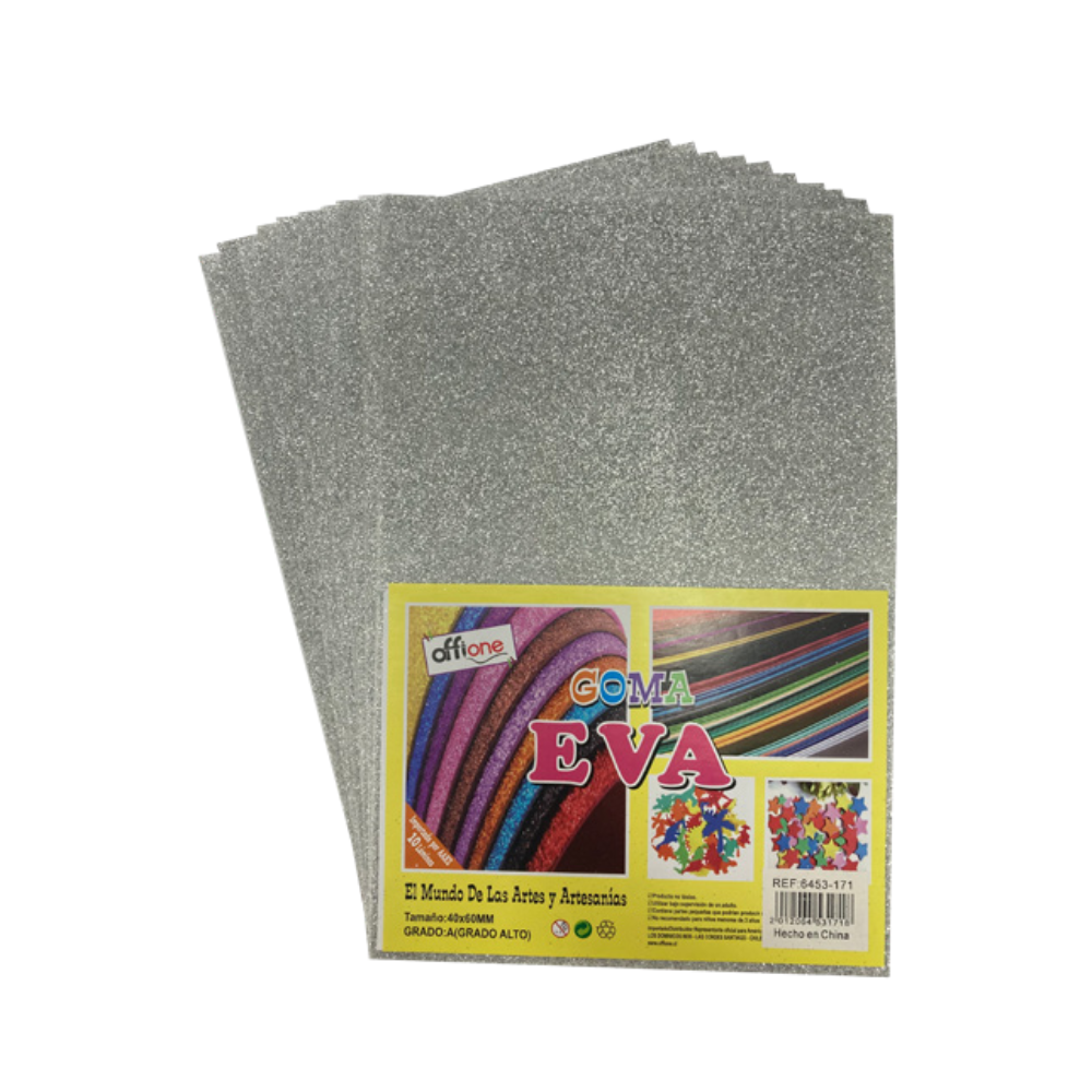 Home Escolar GOMA EVA 40×60 GLITTER PLATA